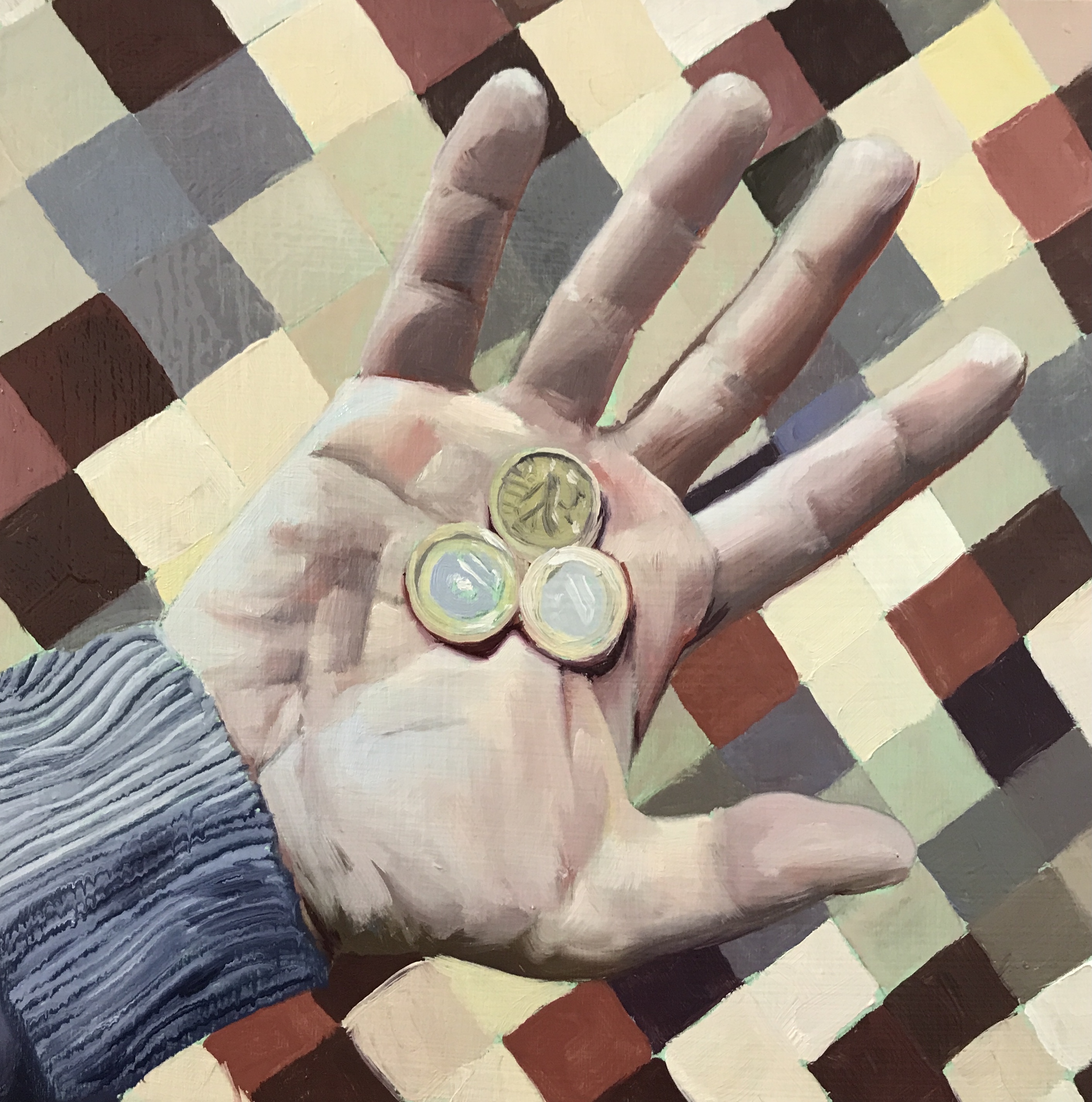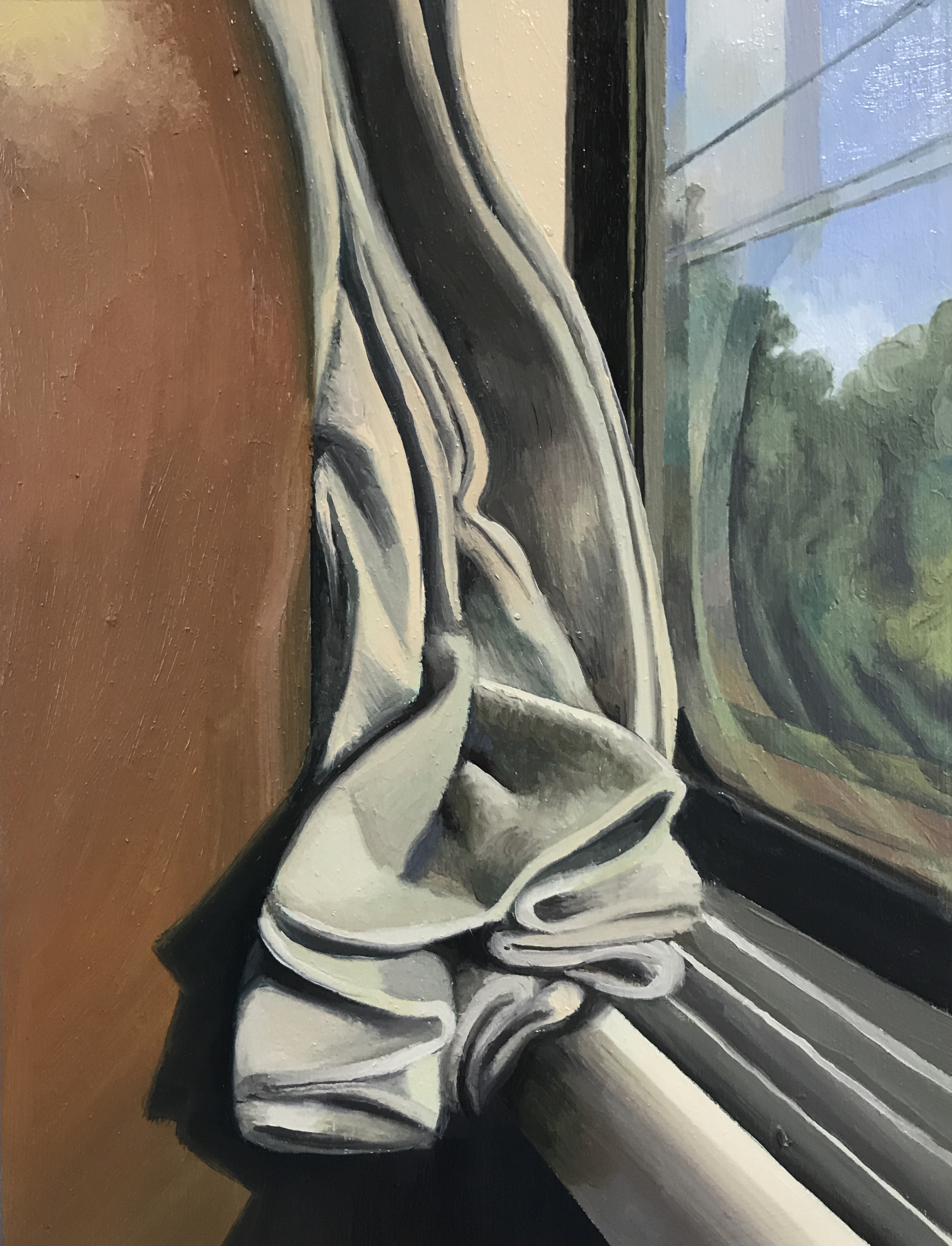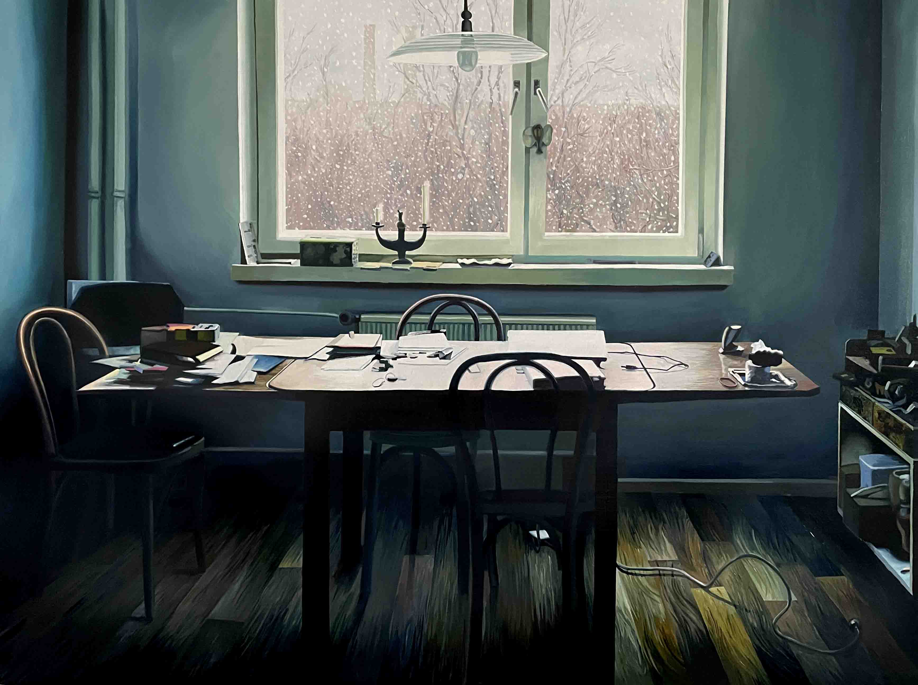 En ce sens, sa peinture est profondément intime ; les objets à taille réduite sont à portée de main, et les paysages comme issus de nos souvenirs. Comme beaucoup d'entre nous, Renaud prend son quotidien en photo avec son téléphone portable, parfois sur le vif, parfois mis en scène, et c'est en le transposant fidèlement en peinture que le glissement du regard s'opère, et que du banal surgit la beauté.