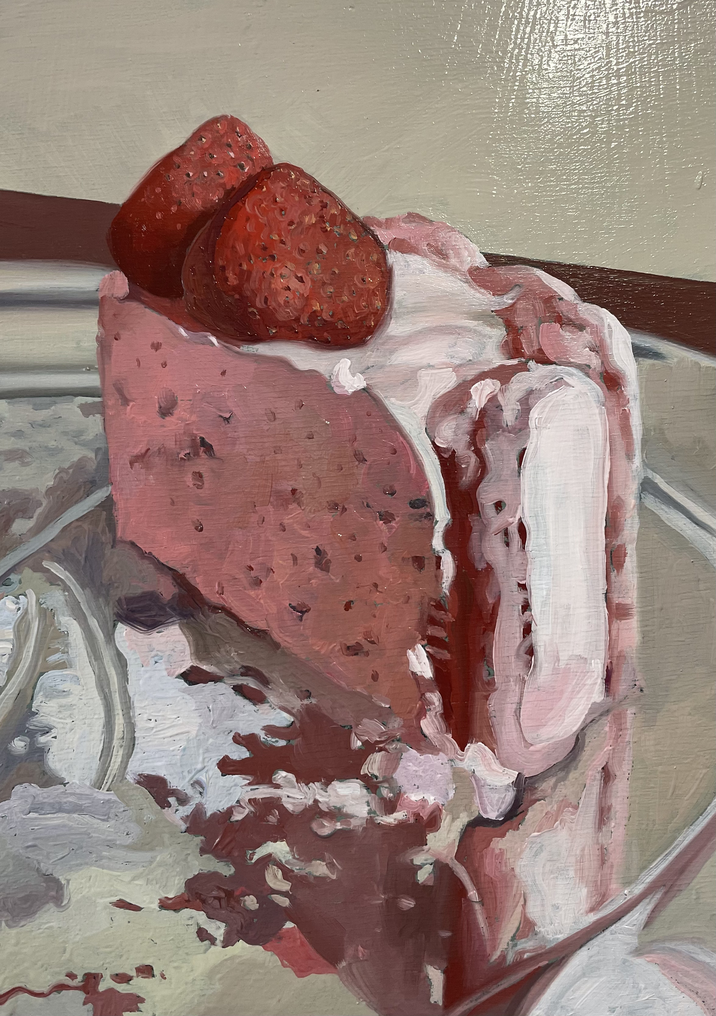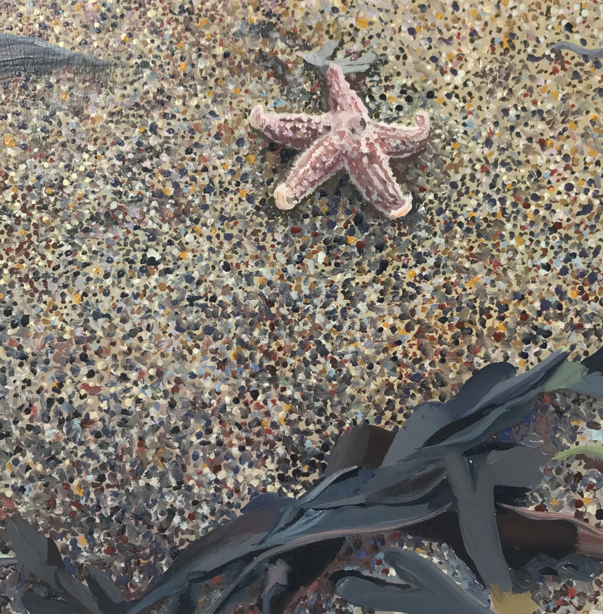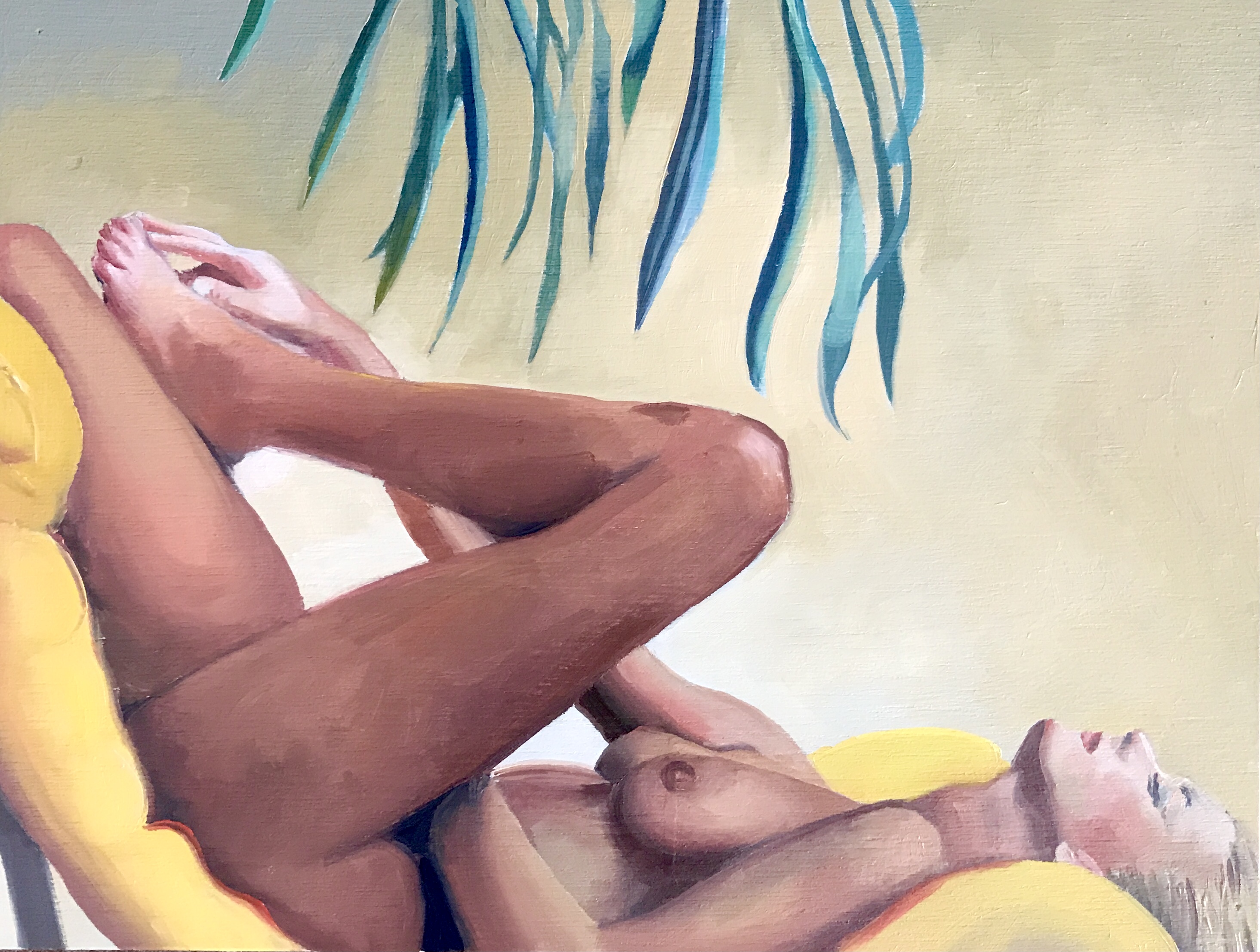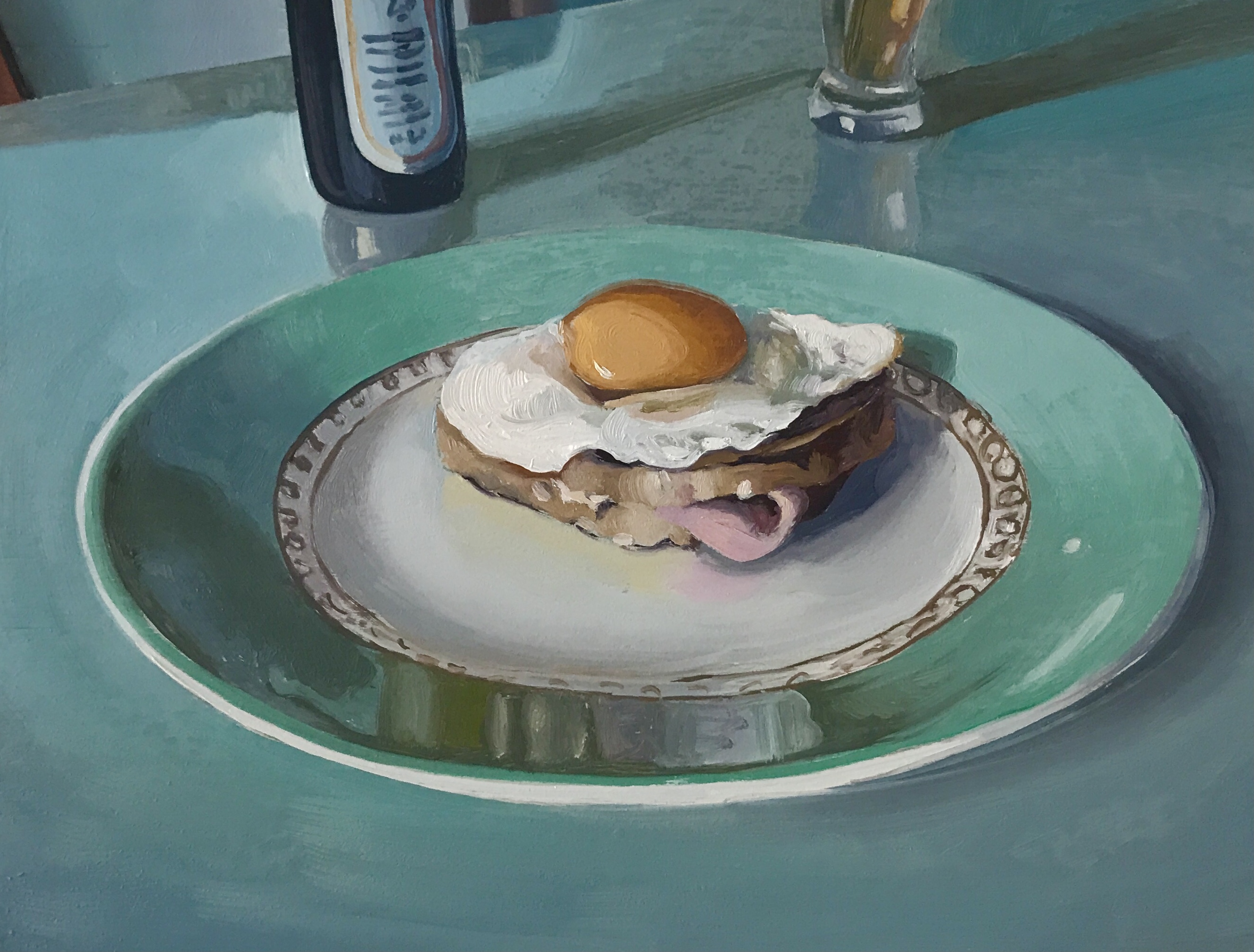 En ce sens, sa peinture est profondément intime ; les objets à taille réduite sont à portée de main, et les paysages comme issus de nos souvenirs. Comme beaucoup d'entre nous, Renaud prend son quotidien en photo avec son téléphone portable, parfois sur le vif, parfois mis en scène, et c'est en le transposant fidèlement en peinture que le glissement du regard s'opère, et que du banal surgit la beauté.